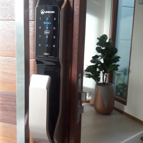 Khóa cửa vân tay Unicor AI-8000 là mẫu khóa cửa vân tay cao cấp nhất của Unicor tung ra thị trường từ tháng 6/2019. Dòng khóa cửa vân tay có thiết kế kiểu đẩy/kéo (Push/pull) của Unicor được tích hợp thêm đầu đọc vân tay ngay tại tay cầm – tiệndụng hơn trong quá trình mở cửa bởi chỉ cần 1 thao tác. Thiết kế tổng thể với mặt trong và mặt ngoài có kích thước tương đương nhau, AI-8000 có tổng thể hài hòa cân đối. Ngoài ra, sản phẩm sử dụng phiên bản phần mềm đã nâng cấp giúp bạn có thể lựa chọn chế độ mở khóa an ninh thường hoặc an ninh cao với mã Master Password.
