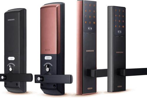 Khóa Samsung 537 màu đen xám nhã nhặn, nâu vàng sang trọng hoặc đỏ đồng đẳng cấp phù hợp với mọi chất liệu và loại cửa khác nhau