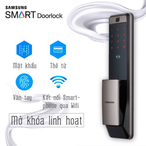 Khoá cửa vân tay Samsung SHP-DP609 vẫn có tính năng mở cửa cơ bản bằng vân tay, mã số, thẻ từ và chìa cơ. Ngoài ra khóa còn có thêm tính năng mở khóa bằng wifi qua app trên điện thoại smartphone. Đây là công nghệ IOT (Internet of thing) tiên tiến nhất hiện nay đang được ứng dụng trên các sản phẩm thông minh nói chung.