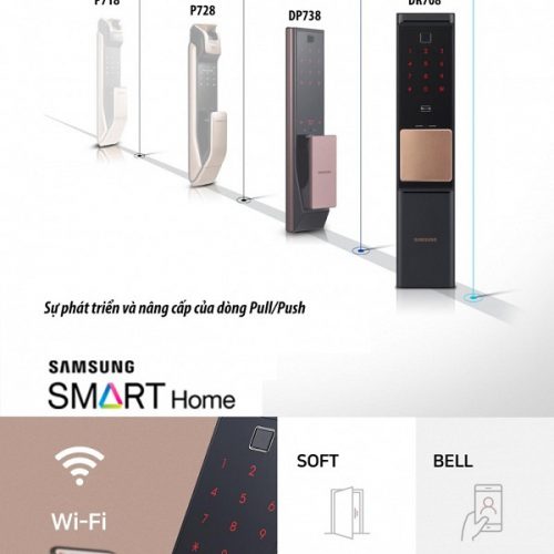 Khóa cửa điện tử Samsung đã là một trong những thương hiệu khóa cửa hàng đầu thế giới. Người tiêu dùng biết đến sản phẩm của Samsung bởi chất lượng tốt và những thiết kế tinh sảo. Không dừng lại ở những dòng khóa cửa điện tử thông dụng, Samsung đã cải tiến và cho ra đời dòng khóa vân tay thông minh Samsung SHP-DR708 có thể kết nối với hệ thống Wifi. Người dùng có thể sử dụng ứng dụng trên điện thoại smartphone để mở khóa từ xa. Đây là sản phẩm khóa cửa vân tay đầu tiên của Hàn Quốc ứng dụng công nghệ IOT và tính hữu dụng của nó như: Mở khóa cho người thân khi bạn vắng nhà, quản lý thời gian mở của của các thành viên, kết nối với hệ thông nhà thông minh,….